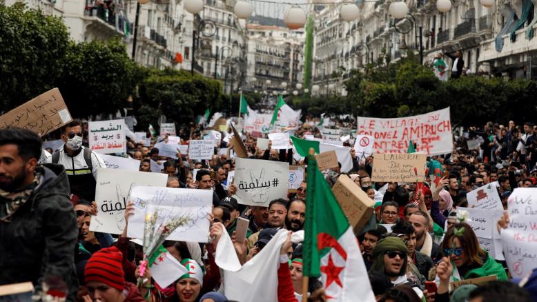 فبالجزائر العاصمة، و في ثاني جمعة منذ حلول شهر رمضان، تحدى المتظاهرون مرة أخرى، مشقة الصيام و الإعياء ليتجمعوا بالساحات و الشوارع الكبرى، مؤكدين مجددا تشبثهم بالمطالب التي دأبوا على رفعها خلال الأسابيع الفارطة، من بينها معاقبة الفاسدين المتورطين في نهب المال العام، مع التشديد على أن “الشعب هو السلطة و المؤسس” وكذا رفض إجراء الانتخابات الرئاسية في تاريخها المقرر يوم 4 يوليو والذهاب إلى مرحلة انتقالية تقودها شخصية وطنية “كفؤة ونزيهة”.