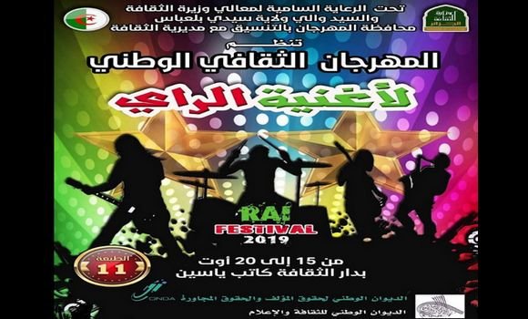 للإشارة تتواصل سهرات المهرجان الوطني لأغنية الراي المنظم تحت إشراف وزارة الثقافة وبالتعاون مع الديوان الوطني لحقوق المؤلف والحقوق المجاورة إلى غاية يوم الاثنين المقبل وذلك بمشاركة أكثر من ثلاثين فنانا ، كما تتخللها ندوات ومحاضرات حول موسيقى وأغنية الراي.