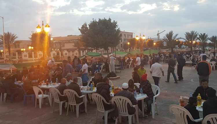 عقب نهاية المسيرات السلمية بعاصمة الولاية الطارف مركز تجمع الآلاف من المشاركين في الحراك الشعبي ضد ما تبقى من رموز نظام الرئيس المستقيل عبد العزيز بوتفليقة في ساحة الاستقلال أمام مقر الولاية من اجل تنظيم مائدة الإفطار الجماعي الذي شارك فيها أكثر من 1000 شخص .