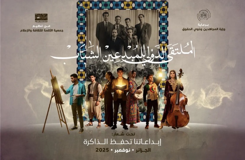ويشارك في هذا الملتقى, الذي تنظمه جمعية “الكلمة” للثقافة والإعلام برعاية من وزارة المجاهدين وذوي الحقوق ووزارة الثقافة والفنون, مبدعون شباب من مصر, سوريا, الأردن, الصحراء الغربية, ليبيا, تونس, إسبانيا, اليمن و من مختلف ولايات الوطن. وقالت وزيرة الثقافة والفنون, مليكة بن دودة, في كلمة ألقاها نيابة عنها مدير الديوان بالوزارة, محمد سيدي موسى, أن هذا اللقاء, الذي ينعقد تحت شعار “إبداعاتنا تحفظ الذاكرة”, بمثابة فرصة “لتبادل الخبرات والبحث عن الجماليات المشتركة”, مضيفة أن “وجود هذه الوجوه الشابة من مختلف الثقافات والخلفيات هو تأكيد على أن الابداع بلغة موحدة يعلو على كل خلاف ويتجاوز كل الحدود