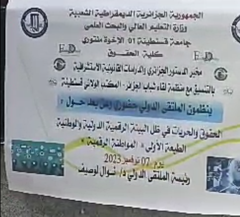احتضنته كلية الحقوق بجامعة قسنطينة (01) الإخوة منتوري الملتقى الدولي الموسوم بـ ” الحقوق و الحريات في ظل البيئة الرقمية الدولية والوطنية ” في طبعته الأولى “