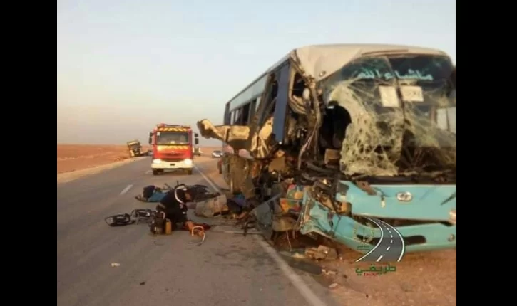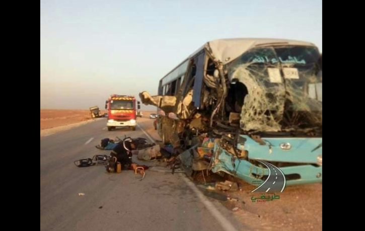 ارتفاع حصيلة حادث مرور بولاية ورقلة إلى 05 وفيات و 13 جريح على إثر اصطدام بين حافلة نقل المسافرين خط (وهران- حاسي مسعود)، مع شاحنة ذات مقطورة وسيارة سياحية على الساعة 06 و27 دقيقة، بالطريق الوطني رقم 49، النقطة الكيلومترية 109، بلدية ورقلة، حسب بيان للمديرية العامة للحماية المدنية.