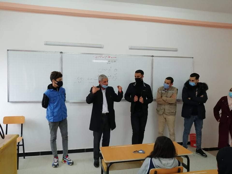 حيث تم إلقاء دروس تحسيسية وجهت لتلاميذ مختلف المؤسسات التعليمية بأطوارها الثلاثة، كما حرصوا خلالها على التذكير كفية الوقائية و إعطائهم جملة من النصائح والإرشادات القيمة التي تساهم في تقويم سلوكهم مع تجنيبهم الإصابة أو نقل هذا الوباء العالمي من مع تقديم الكمامات للتلميذ .