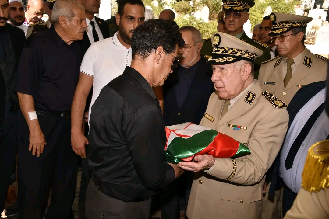 الفريق أول السعيد شنقريحة يلقي النظرة الأخيرة على جثمان الفقيد المجاهد العميد المتقاعد حسين بن حديد