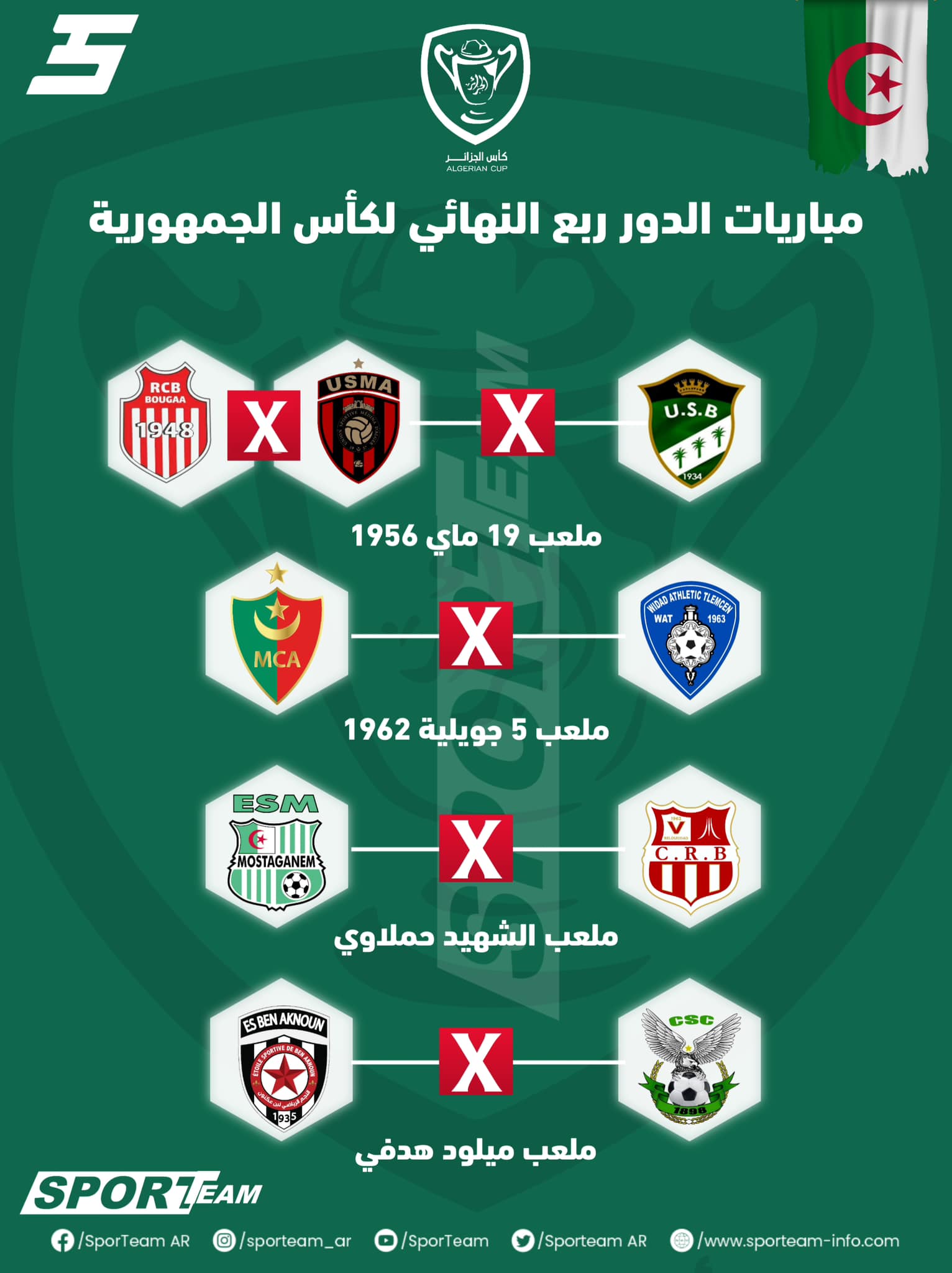 الكبار في أحسن رواق والصغار خرجو من السباق .. أيام 13، 14 و16 أفريل .. في أربع ملاعب عالمية وبإستعمال “الفار” اصطدامات قوية في ربع نهائي كأس الجزائر