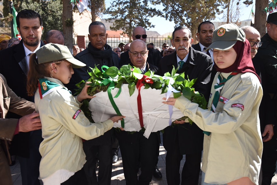 هذا وشهدت المراسيم الرسمية لإحياء الذكرى حضور عديد السلطات المدنية والأمنية على غرار مستشار رئيس الجمهورية المكلف بالأرشيف والذاكرة الوطنية رفقة والي ولاية باتنة “محمد بن مالك “وأحمد بومعراف رئيس المجلس الشعبي الولائي وغيرهم،أين تم التوجه لمقبرة الشهداء ضريح الشهيد البطل مصطفى بن بولعيد ورفع العلم الوطني مع الاستماع للنشيد الوطني ووضع باقة إكليل من الزهور والاستماع لآيات بينات من الذكر الحكيم ترحما على أرواح الشهداء الطاهرة إضافة إلى ذلك تم زيارة منزل الشهيد مصطفى بن بولعيد رفقة الوفد الوزاري .