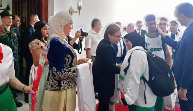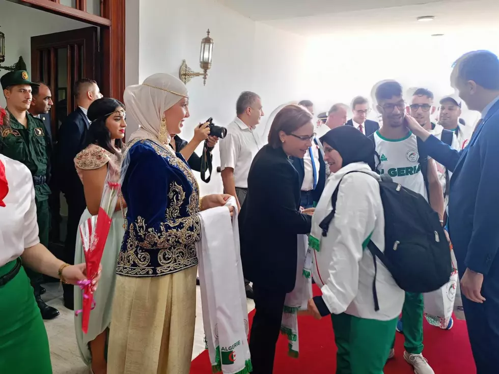 وكان في استقبال الوفد الجزائري،بمطار هواري بومدين بالجزائر العاصمة،وزير الشباب والرياضة،السيد عبد الرحمان حماد،ووزيرة التضامن والأسرة وقضايا المرأة،السيدة كوثر كريكو،بالإضافة إلى عائلات الرياضيين.