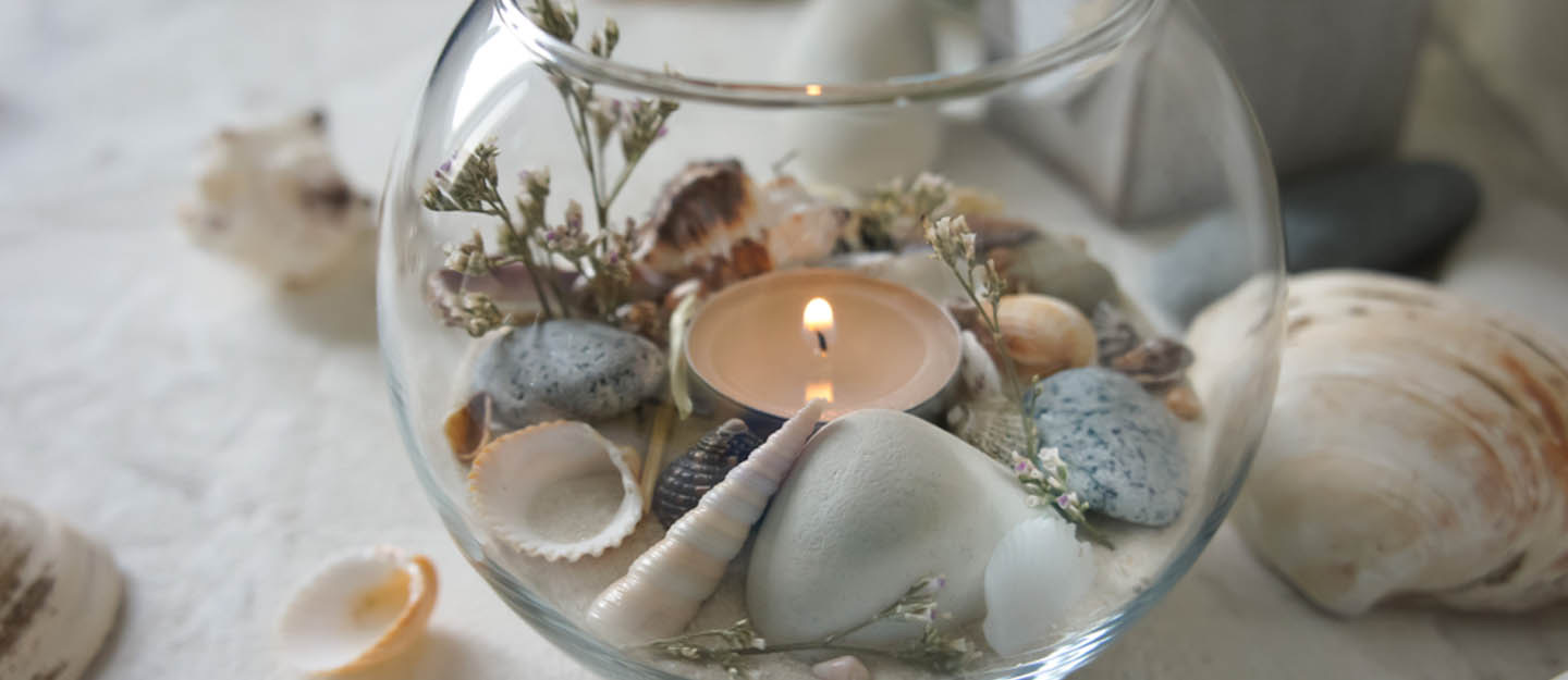 وضع الرمل والأصداف ونجوم البحر في مزهريات شفافة، وتوضع على طاولة بارزة لتقع عليها العين بين الفينة والأخرى، كما يمكن استخدام أصداف البحر الكبيرة كحاويات للشموع ووضعها على موائد الطعام.