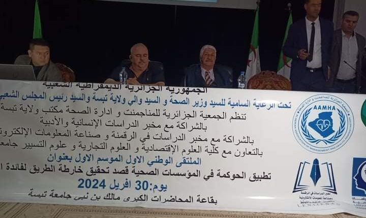 حيث تم التطرق في هذا الملتقى الوطني إلى الحوكمة لغرض تعزيز ونقل الخبرات والمعارف للمساهمة في ترقية الممارسات الإدارية والمالية في قطاع الصحة من خلال عديد المداخلات عبر سبع محاور أساسية وقدرت المشاركات بأكثر من 45 مشاركا، حسبما أفاد به رئيس المكتب الولائي للجمعية الجزائرية للمناجمنت وإدارة الصحة تبسة أن هذا الملتقى الذي يضم إطارات قطاع الصحة يهدف إلى تمكين الإداريين في الصحة من معرفة الأدوات الحديثة للتسيير المالي والبرامج المعتمدة، وتقديم الممارسات الجيدة الواجب الاعتماد عليها في تسيير المؤسسات الصحية، بالإضافة إلى التطرق إلى أهمية الحوكمة كأداة دعم لبرامج خارطة الطريق لفائدة المريض، علاوة عن معرفة كيفية تطبيق نظام الحوكمة والأداء الجيد والهدف منها كخطوة مهمة في دعم الأنشطة لفائدة المريض.