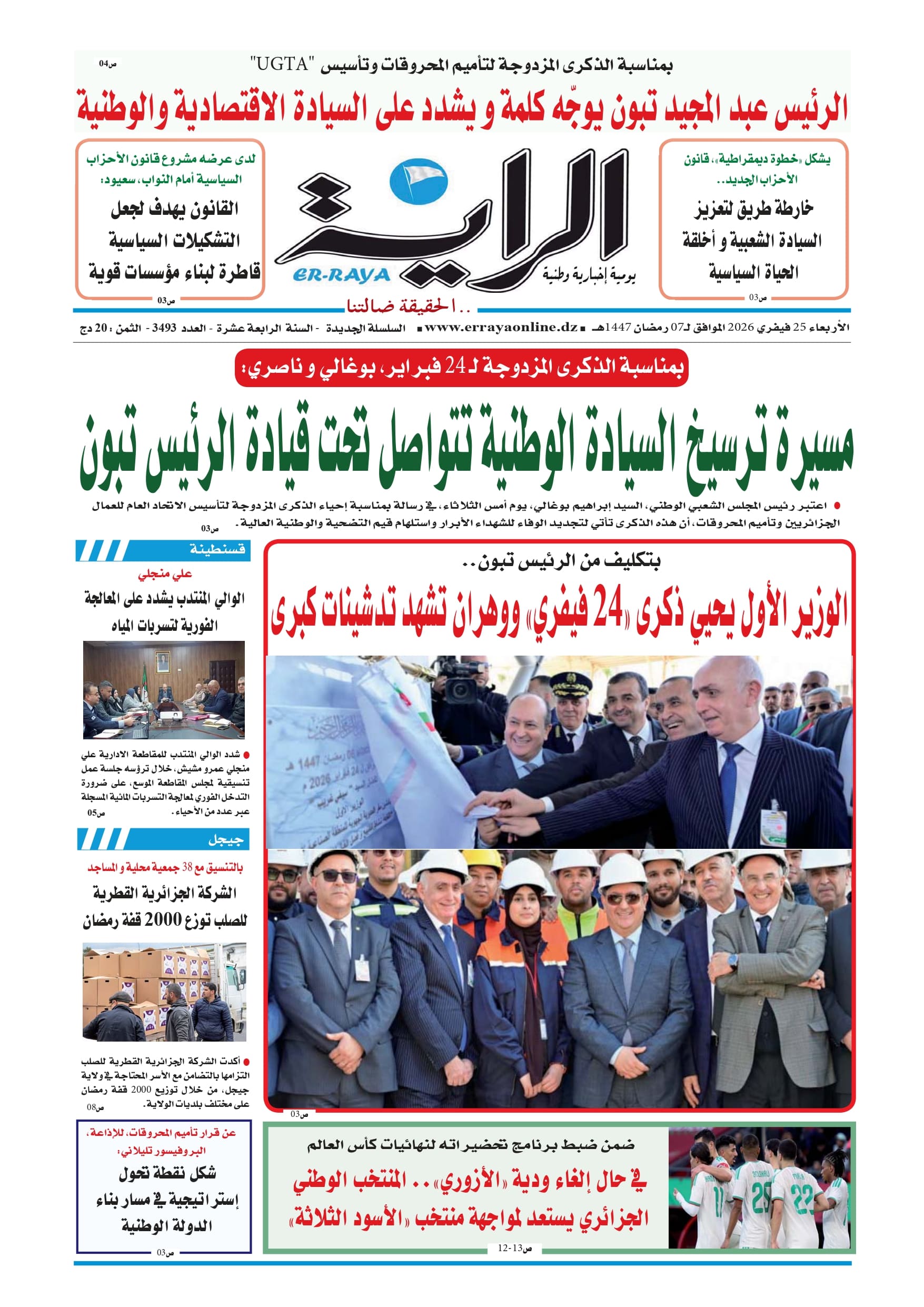 الوزير الأول يحيي ذكرى “24 فيفري” ووهران تشهد تدشينات كبرى