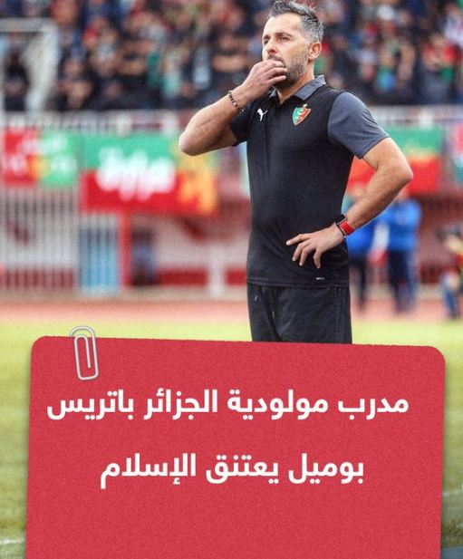أفادت تقارير إعلامية جزائرية بأن الفرنسي باتريس بوميل، مدرب مولودية الجزائر اعتنق الإسلام ونطق بالشهادتين في أحد المساجد بالجزائر العاصمة خلال الأيام القليلة الماضية.