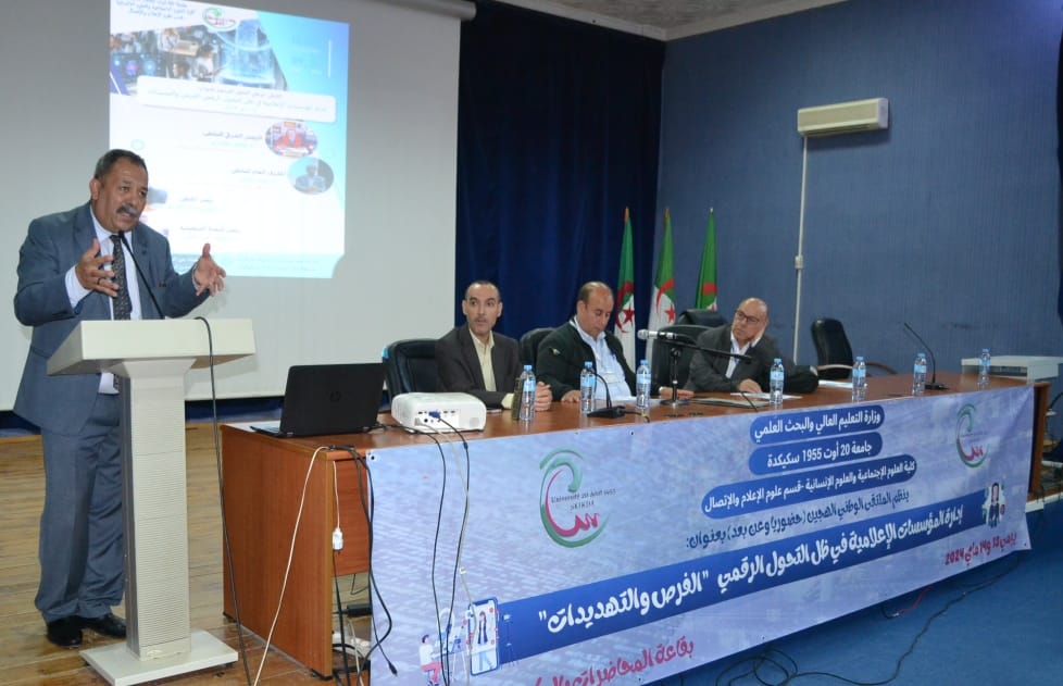 ناقش الملتقى المنظم من قبل قسم الاعلام والاتصال بكلية العلوم الانسانية والعلوم الاجتماعية بجامعة 20 أوت 1955 بسكيكدة موضوع المؤسسات الإعلامية في ظل التحول الرقمي على خلفية التطورات التي تشهدها الساحة الإعلامية في الجزائر، لاسيما ما تعلق بترسانة القوانين والتشريعات المتعلقة بالقوانين الإعلامية والتي ستعرف مستقبلا تغييرات من حيث المنظومة القانونية والتشريعية، ليشكل إشكالية بحث حول إدارة المؤسسات الإعلامية في ظل التحول الرقمي الذي نعيش فيه من خلال استعمال أدوات الذكاء الاصطناعي والروبوت الصحفي وغيرهما.