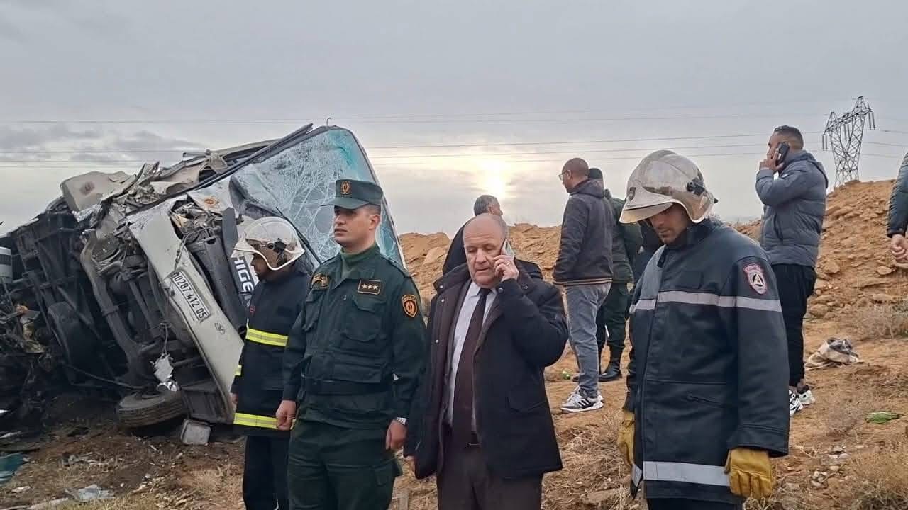تسبب حادث اصطدام عنيف بين حافلة لنقل المسافرين وشاحنة،صباح أمس،في إصابة 17 شخصاً بينهم حالتان وصفتا بالخطيرة وذلك على مستوى الطريق الوطني رقم 28 ببلدية بريكة.