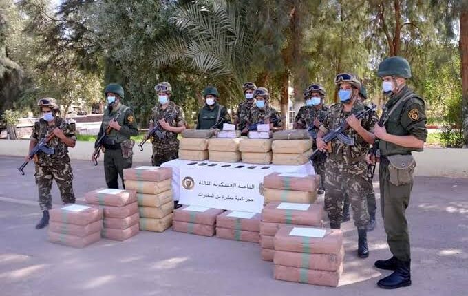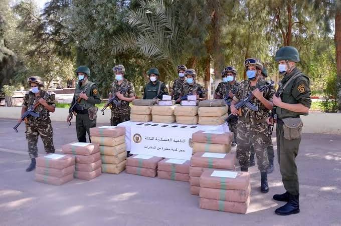 وفي إطار عمليات محاربة الجريمة المنظمة ومواصلة للجهود الحثيثة الهادفة إلى التصدي لآفة الاتجار بالمخدرات ببلادنا،أوقفت مفارز مشتركة للجيش الوطني الشعبي، بالتنسيق مع مختلف مصالح الأمن خلال عمليات مختلفة عبر النواحي العسكرية، (36) تاجر مخدرات وأحبطت محاولات إدخال كميات معتبرة من المخدرات عبر الحدود مع المغرب، تُقدر بـ (05) قناطير و(8,5) كيلوغرام من الكيف المعالج،كما تم ضبط (01) كيلوغرام من مادة الكوكايين و(341337) قرصا مهلوسا” .