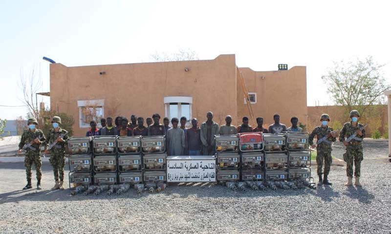 كما تم “توقيف 29 شخصا آخر وضبط مسدس (01) رشاش من نوع كلاشنيكوف و18 بندقية صيد و4 مسدسات آلية و19570 لتر من الوقود و14 طنا من المواد الغذائية الموجهة للتهريب والمضاربة و14 قنطارا من مادة التبغ، وهذا خلال عمليات متفرقة عبر التراب الوطني” .