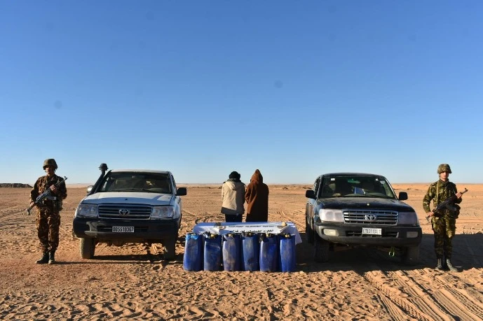 هذا بالإضافة إلى كميات من المتفجرات ومعدات تفجير وتجهيزات تستعمل في عمليات التنقيب غير المشروع عن الذهب،في حين تم توقيف 30 شخصا آخر وضبط مسدس (01) رشاش من نوع كلاشنيكوف و10 بنادق صيد و17834 لتر من الوقود و78 طن من المواد الغذائية الموجهة للتهريب والمضاربة و5,5 قنطار من مادة التبغ و17176 وحدة من مختلف المشروبات،وهذا خلال عمليات متفرقة عبر التراب الوطني”.