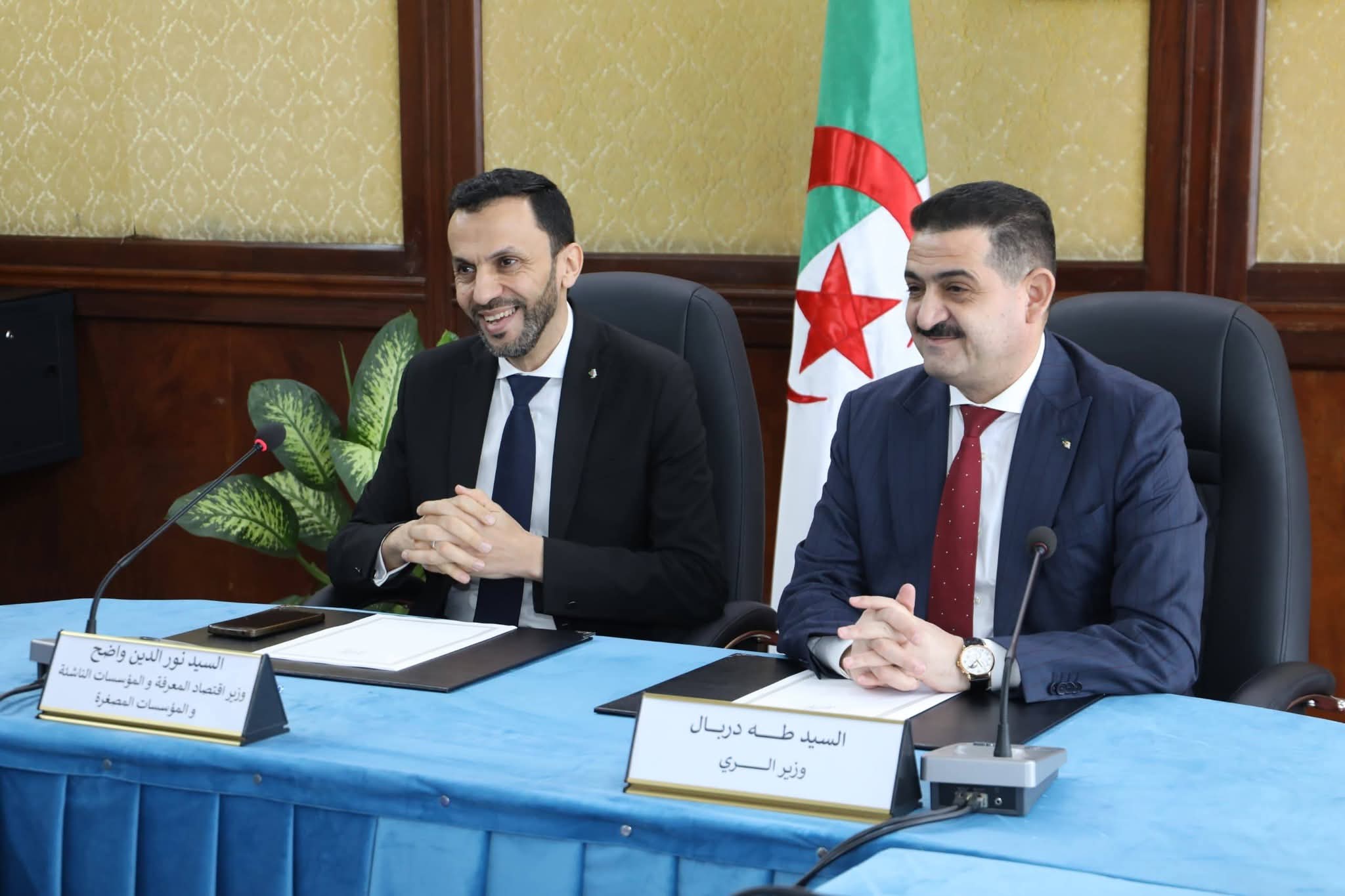 بحث وزير الري, طه دربال, يوم أمس بالجزائرالعاصمة, مع وزير اقتصاد المعرفة والمؤسسات الناشئة والمؤسسات المصغرة, نور الدين واضح, سبل تعزيز التعاون مع المؤسسات الناشئة والمصغرة في المجالات المرتبطة بقطاع الري, حسبما أفاد به بيان لوزارة الري.