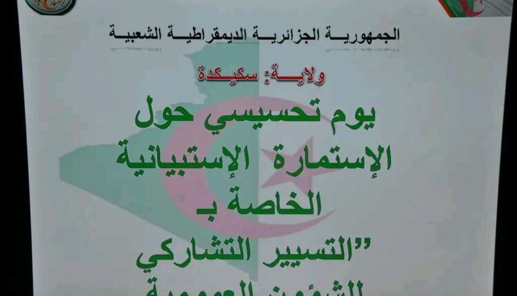 أشرف المفتش العام لولاية سكيكدة طارق قليل نيابة عن الوالي حورية مداحي على فعاليات الإطلاق الرسمي لاستبيان في مجال تعزيز الديمقراطية التشاركية، الهادف إلى رصد مختلف الآراء والاقتراحات لدى المواطنين والجماعات المحلية وفعاليات المجتمع المدني والمنتخبين المحليين وايضا المتعاملين الاقتصاديين العموميين والخواص، وكذا تعزيز كل مسعى يسهم في وضع استراتيجية وفق اسس صلبة وملائمة، وذلك في إطار التحضير لوضع استراتيجية قطاعية في مجال الديمقراطية التشاركية على المستوى المحلي تنفيذا لتعليمات وزارة الداخلية والجماعات المحلية والتهيئة العمرانية.