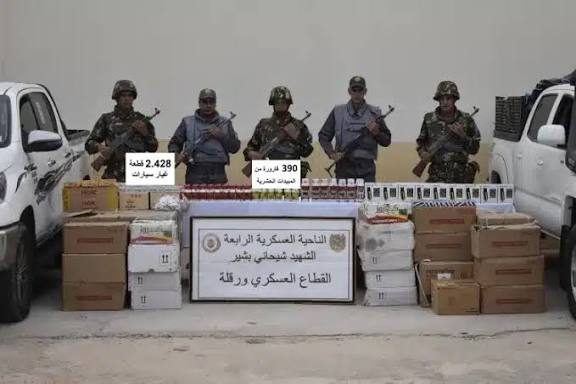 كما تم توقيف 21 شخصا آخر وضبط 15 بندقية صيد و67 لتر من الوقود،بالإضافة إلى 18 قنطارا من مادة التبغ،و19 طن من المواد الغذائية.