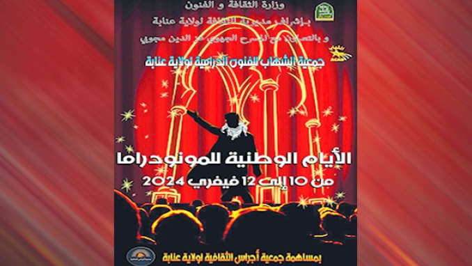 وبالنسبة، للمشاركين في الأيام، الوطنية للمونودرام، من ولاية عنابة سيكون منودرام: “فيروس” للفنان أوديني محمد الشريف حاضر يليه المنودرام: “الصرخة” للفنان بناري قدور وكذلك المنودرام: “غابتلي” للفنان رحماني نبيل من ولاية عنابة، للإشارة تم انتقاء هذه العروض المسرحية من طرف لجنة التحكيم المكونة من الفنان محمد العيد قابوش رئيسا والأعضاء، الفنان حميد مداحي والفنان حسين صويلح، بعد مشاهدة 17 عرض للمونودراما، قررت اللجنة اختيار 7 عروض من داخل وخارج ولاية عنابة للمنافسة على مدار أسبوع كامل خلال الأيام الوطنية للمونودرام.