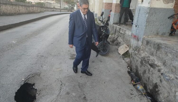 وتوسعت التشققات بشارع طاطاش بلقاسم المعروف محليا بالروتيار بقسنطينة حيث سجل الأسبوع الماضي انهيار آخر مع تشكل حفرة كبيرة بالطريق، ليتم إثر ذلك برمجة خرجة ميدانية تحت إشراف رئيس المجلس الشعبي البلدي “شراف بن ساري” بمعية الأمين العام لولاية قسنطينة وبحضور الأمن الوطني، الحماية المدنية، مديرية الأشغال العمومية، مديرية الري، الشركة الوطنية للكهرباء والغاز، شركة المياه والتطهير قسنطينة، وغيرها من الجهات المعنية، حيث أمر رئيس المجلس الشعبي البلدي بغلقه فورا وسريعا بالنظر لخطورة الوضع والتكفل بأشغال تهيئته في القريب العاجل فيما قام لاحقا الوالي بمعاينة الطريق وإصدار تعليمات للإسراع في ترميمه.