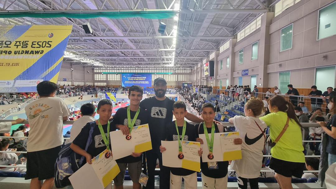 أبهر تلاميذ مدرسة عمراني للتايكواندو بسكيكدة العالم خلال مشاركتهم في التظاهرة العالمية للتايكواندو التي أقيمت بجامعة غوانجو في كوريا الجنوبية، أين حصد تلاميذ المدرسة 4 ميداليات برونزية في منافسة اليومسي.