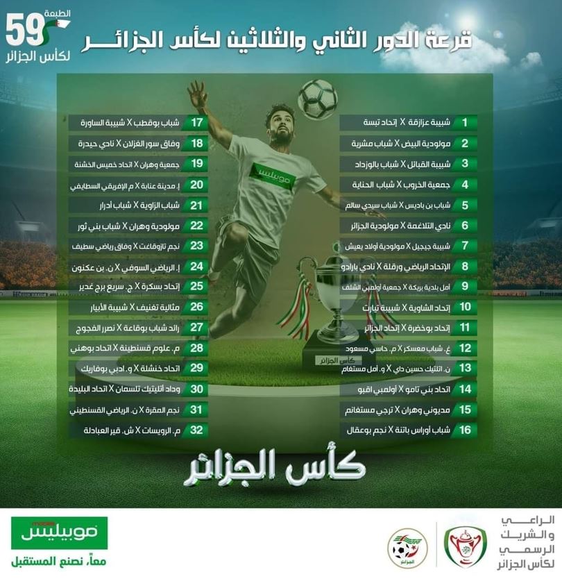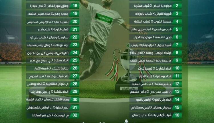 مباريات الدور الـ32 لكأس الجزائر (2 و 3 فبراير 2024):