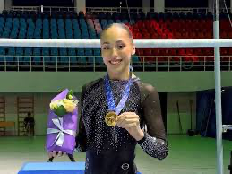 وافتكّت كيليا (18 عاماً) ميدالية المعدن النفيس بعلامة 14.700، وبدرجة صعوبة 6.3.
