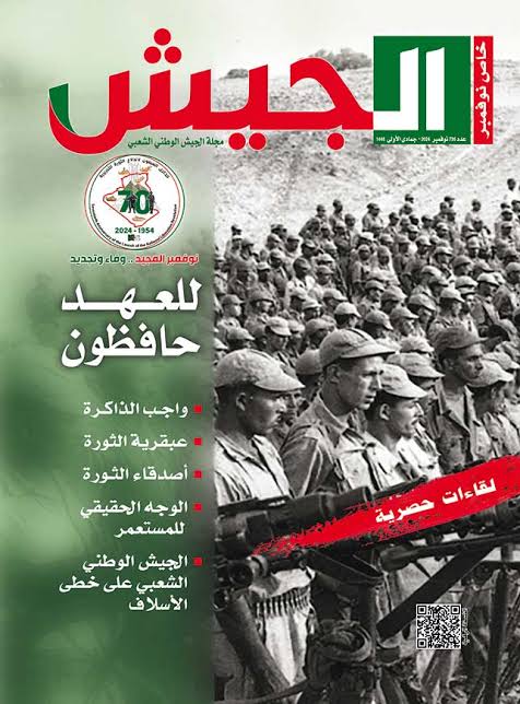 وأضافت المجلة أنها مناسبة نستحضر خلالها التضحيات الجسام التي تكبدها الشعب الجزائري الأبي ثمنا للخلاص من الظلم والهيمنة في ملحمة من أندر الملاحم، كيف لا وهي الشرارة التي أوقدت الوعي لدى الجزائريين وارتفعت به إلى أسمى الدرجات، لتؤجج لهيب التحرر في نفوسهم ففجروا في الفاتح نوفمبر 1954 أعظم ثورة في القرن العشرين، لقنت المحتل المقيت طيلة سبع سنوات ونصف من الحرب الضروس دروسا لا تُنسى، بفضل إرادة شعبنا التي لا تلين، وعزيمته التي لا تقهر، وبسالته منقطعة النظير، وإصراره المستميت على التحرر والانعتاق من أغلال العبودية، فكان النصر المظفر حليفه.