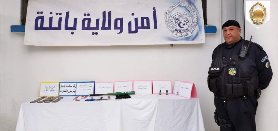من جهتها و في عمليتين شرطتيتين بعدة أحياء بمدينة باتنة أوقفت عناصر ذات الفرقة 04 أشخاص تتراوح أعمارهم بين 23 و 42 سنة من بينهم مسبوقين قضائيا أين تم حجز 95 قرص مهلوس نوعي بريقابلين 300 ملغ و ريفوتريل بالإضافة إلى مبالغ مالية تقدر إجمالا بـ 12500 دج من عائدات الترويج ليتم تقديم المشتبه بهم أمام الجهات القضائية المختصة إقليميا.