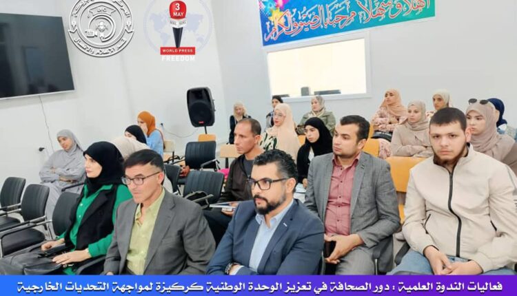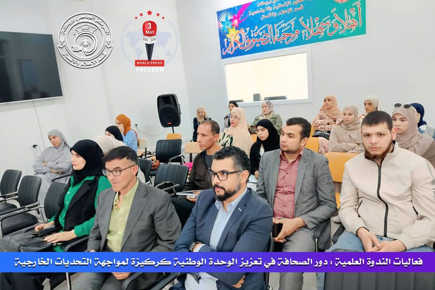 نظم قسم الإعلام و الاتصال باستديو طبنة ،وهذا بالمركز الجامعي بريكة،وذلك بالتنسيق مع مخبر آفاق الحوكمة و التنمية المستدامة ندوة علمية بمناسبة اليوم العالمي لحرية الصحافة بعنوان “دور الصحافة في تعزيز الوحدة الوطنية كركيزة لمواجهة التحديات الخارجية و الحملات المغرضة”وهذا بحضور طلبة الإعلام و الاتصال وضيوف الشرف الدكتورخلفي عبد الحليم و البروفيسور محمودي سماح مديرة مخبر الحوكمة و التنمية المستدامة.