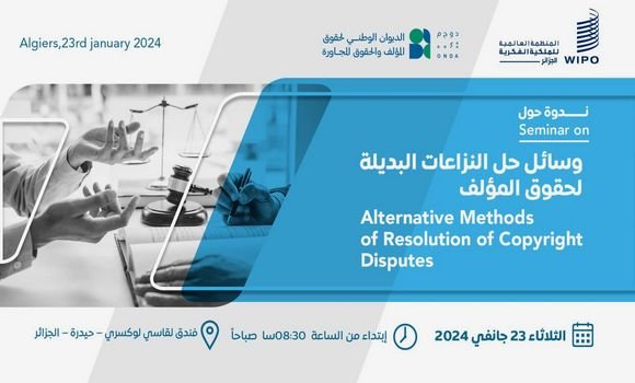 نظم الديوان الوطني لحقوق المؤلف والحقوق المجاورة بالتعاون مع المنظمة العالمية للملكية الفكرية (الويبو)، اليوم الثلاثاء بالجزائر العاصمة، ندوة دولية حول “الوسائل البديلة في حل النزاعات المتعلقة بحقوق المؤلف”، بمشاركة خبراء جزائريين وأجانب، بهدف التعريف ب “مركز التحكيم والوساطة” التابع للمنظمة وتحسيس الفاعلين بالوسائل البديلة لتسوية النزاعات في مجال الملكية الفكرية.