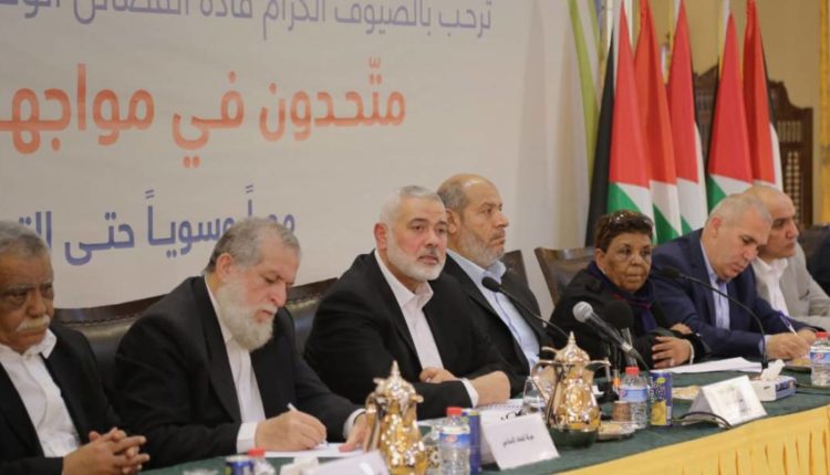ففي كلمة له خلال لقاء عقدته “حماس” في مدينة غزة، اليوم السبت، مع ممثلين عن الفصائل الفلسطينية تحت عنوان “متحدون في مواجهة صفقة القرن”. قال هنية، إن “مواجهة صفقة القرن تتطلب استعادة الوحدة الوطنية الفلسطينية، والالتزام بكافة اتفاقيات المصالحة التي تم توقيعها سابقا”. وشدد على استعداد “حماس” لعقد لقاءات عاجلة وسريعة مع جميع الأطراف الوطنية دون استثناء، خاصة قيادة حركة “فتح”، لبحث كيفية استعادة الوحدة.